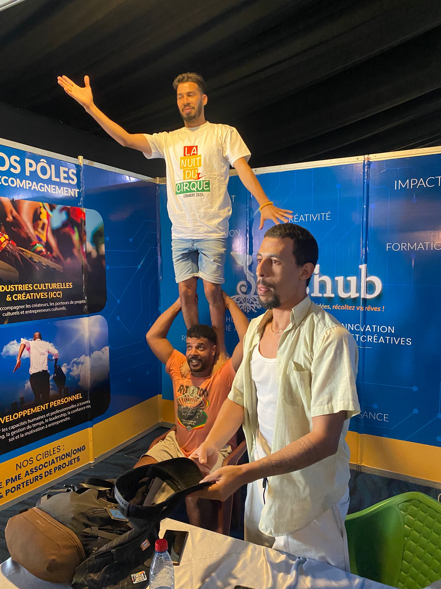 Nous remercions chaleureusement Richard Djoudi & Bacala Kerfalla pour leur confiance, ainsi que le CC Franco Guinéen pour son invitation et son incroyable travail à l’organisation de cette semaine de festivités et de rencontres professionnelles à l’occasion de la Nuit du Cirque.